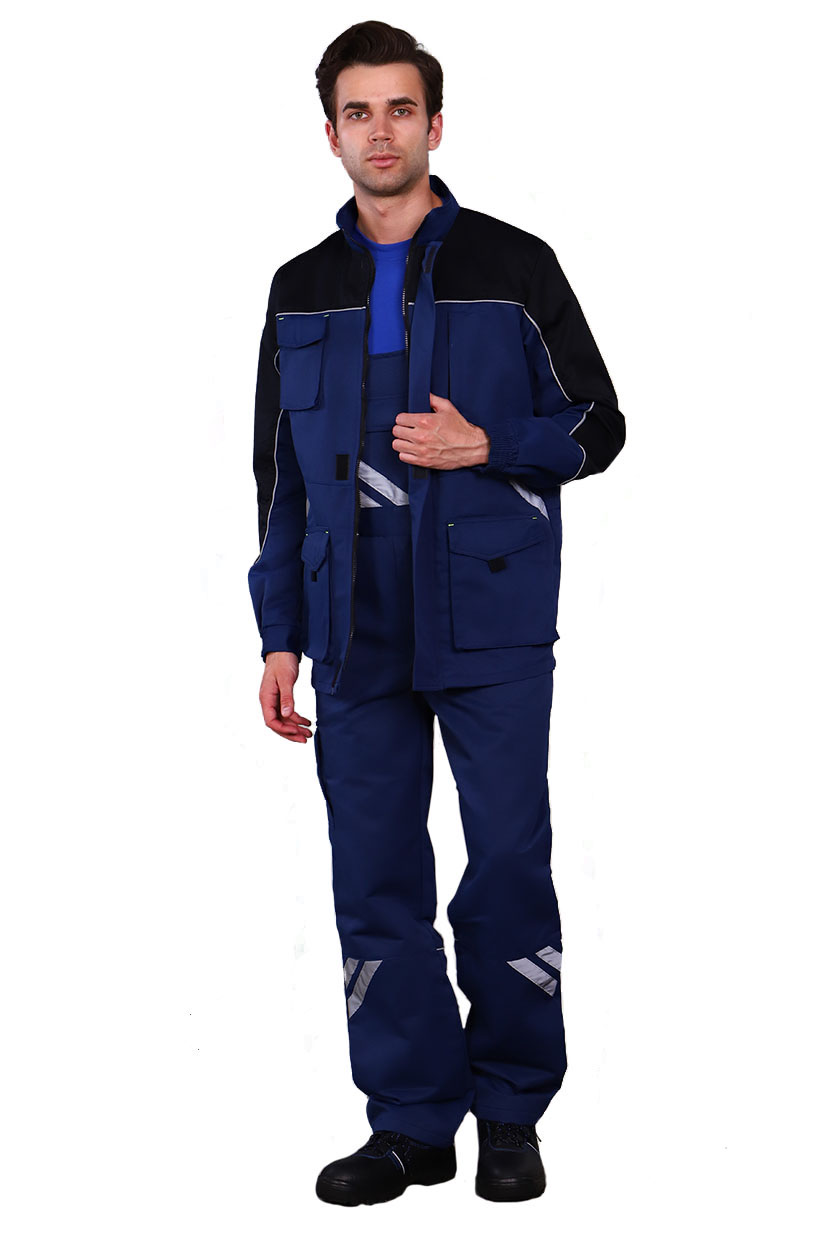 ➠ Полукомбинезон с застежкой в правом боковом шве на пуговицы, гульфик на «молнию». На грудке накладной карман с клапаном, на правом бедре объемный карман с клапаном.