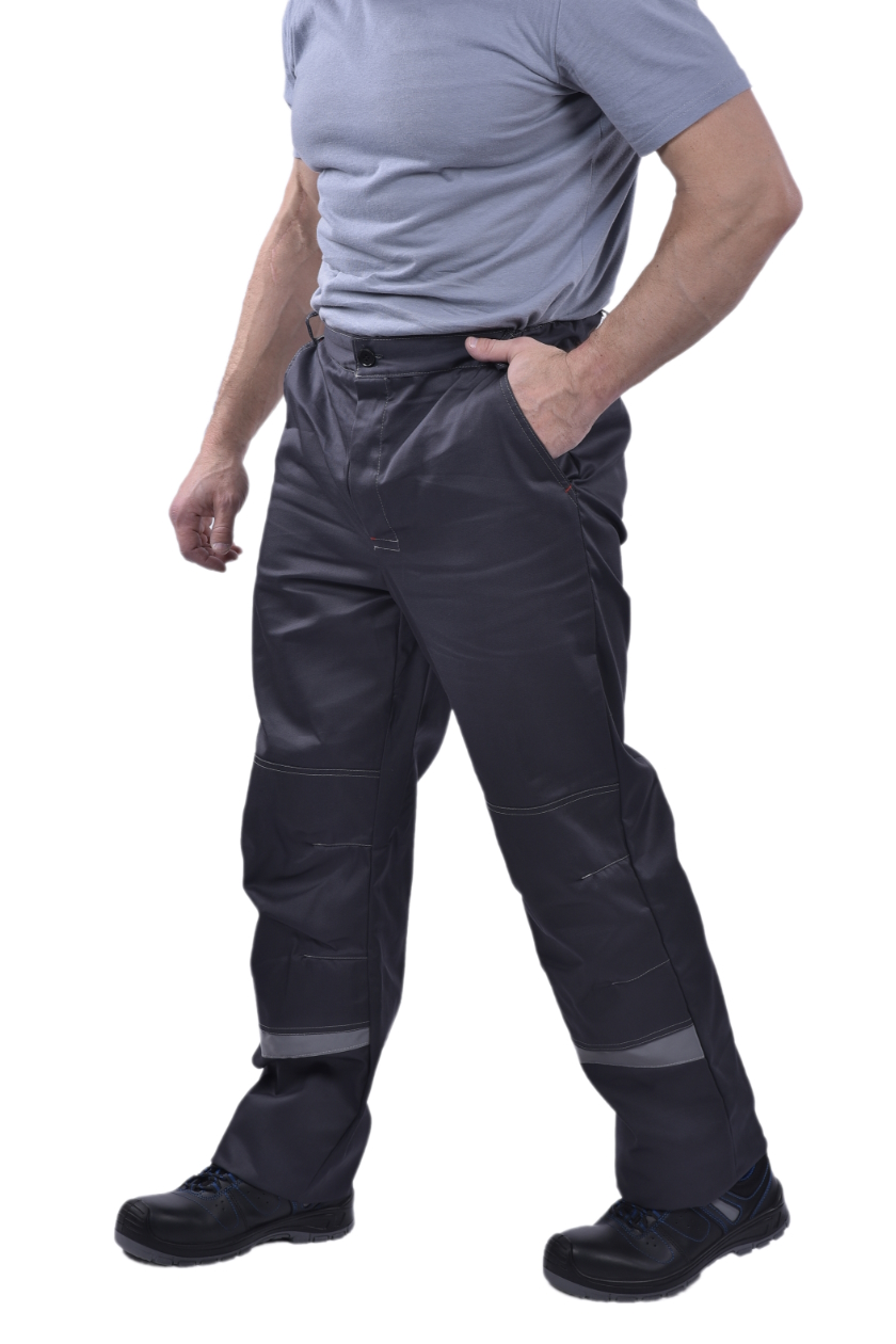 ➠ Брюки с застежкой гульфика на три пуговицы, с двумя боковыми карманами в бочках с наклонным фигурным входом. На правой задней половинке накладной карман.