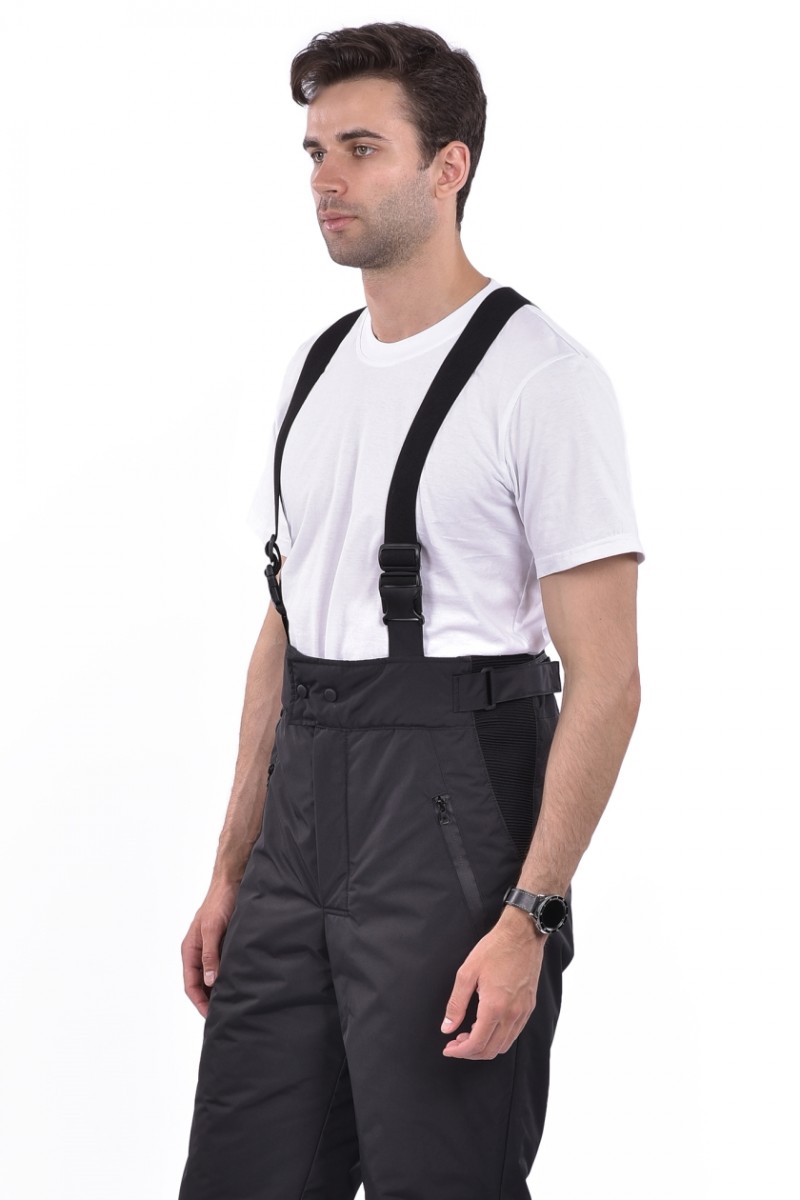 ➠ Брюки утеплённые: притачной расширенный пояс, бретели на застежке фастекс. Два боковых кармана на молнии. Внизу боковых швов обработаны разрезы, застегиваются на тесьму «молния» и закрываются клапаном на липучке.