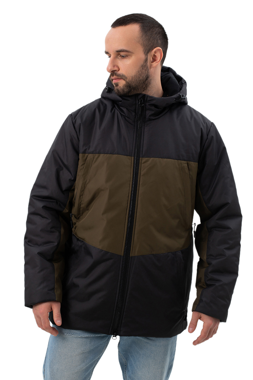 Куртка мужская демисезонная хаки с утеплённой подкладкой. Прямой силуэт, воротник стойка, капюшон несъемный.