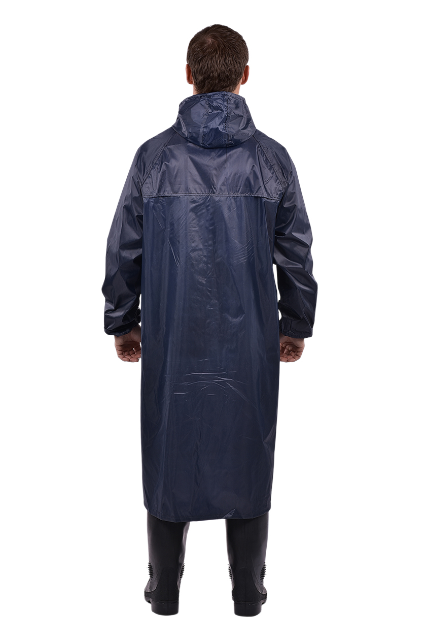 Плащ прямого силуэта, центральная застёжка на молнии, ветрозащитная планка на кнопках для дополнительной защиты от влаги.
